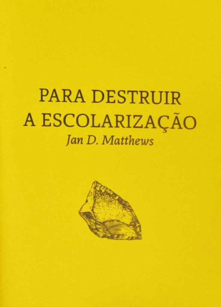 O texto escrito por Jan D. Matthews faz uma crítica radical da escolarização como processo de preparação para a vida em sociedade e, consequentemente, para uma vida em servidão. O texto dedica espaço a uma contextualização histórica da escolarização e a algumas das teorias que mais a marcaram, ao ensino universitário e à sua “miséria” e a pontuais episódios de resistência por parte de estudantes e respectivos familiares, em particular nos E.U.A., onde o processo de escolarização contribuiu para a colonização desse território.
